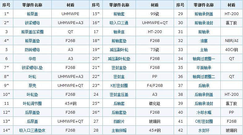 聚丙烯(P):用于无固相物料的清液的输送。例如废气处理系统的逼压喷淋泵(烟气脱硫等)。
