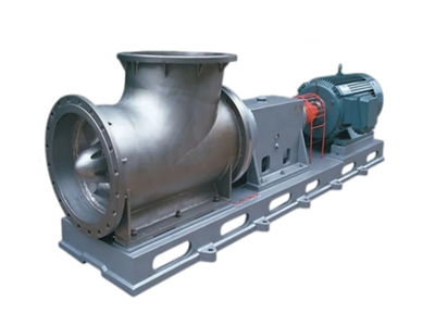 FJX型卧式轴流泵输送液体不是依靠叶轮对液体的离心力,而是利用旋转叶轮叶片的推力使被输送的液体沿泵轴方向流动。当泵轴由电动机带动旋转后,由于叶片与泵轴轴线有一定的螺旋角,所以对液体产生推力(或叫升力),将液体推出从而沿排出管排出。当液体被推出后,原来位置便形成局部真空,外面的液体在大气压的作用下,将沿进口管被吸入叶轮中。只要叶轮不断旋转,泵便能不断地吸入和排出液体。