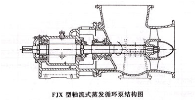 FJX蒸发结晶循环泵是利用叶轮旋转产生的沿泵轴方向的水平推力工作,因此也称卧式轴流泵。主要用在隔膜法烧碱、磷酸、真空制盐、乳酸、乳酸钙、氧化铝、钛白粉、氯化钙、氯化铵、氯酸钠、制糖、熔盐、造纸、废水等行业的蒸发、浓缩、冷却,为提高设备生产能力,增加换热器的传热系数作强制循环用。故而也可称为轴流式蒸发结晶循环泵。
