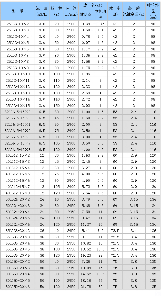 LG型高层建筑多级给水泵,系立式单吸多级分段式离心泵,供输送常温清水及物理化学性质类似于清水的液体。 LG系列泵为立式安装,电机轴与泵轴通过爪型连轴器联接,具有结构紧凑、噪音低、占地面积小等优点。 本司产品全部采用计算机设计和优化处理,公司拥有雄厚的技术力量、丰富的生产经验和完善的检测手段,从而保证产品质量的稳定可靠。